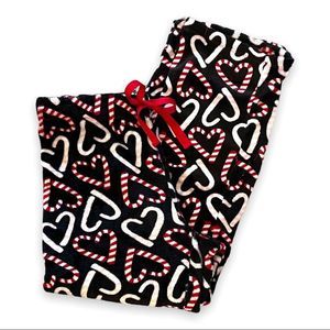 Faded Glory Heart Shaped Candy Canes on Black Fleece Background Size M (8-10)