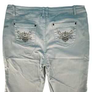 Faded Glory High Rise Capri Cropped White Denim Jeans 20W Embroidered Pockets