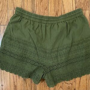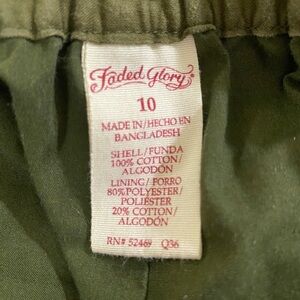 These high-waisted shorts from Faded Glory feature a soft, comfortable fit in a vibrant green color. The delicate lace trim along the hem adds a touch of elegance to their casual design, making them perfect for warm-weather outings.