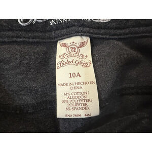 Interior markings: Faded Glory script at waistband; "SKINNY 10A" printed inside