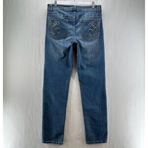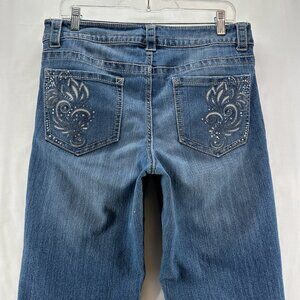 Faded Glory Jeans Womens 12A Straight High Rise Stretchy Denim Embellished Blue