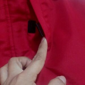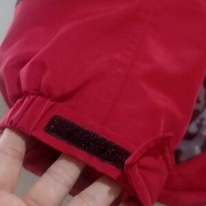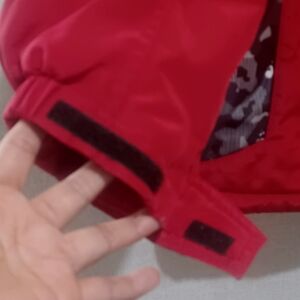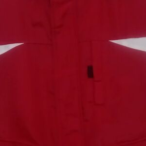Warm and cozy puffer jacket. Red with stylish black and white details. Ideal for chilly days.