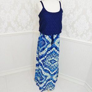 Faded Glory Long Maxi Blue Sundress Dress Beachy Vacation Juniors Size Medium