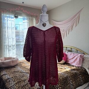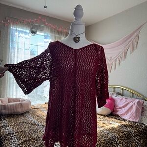 Chic magenta knit top with intricate pattern. Ideal for casual wear.