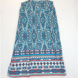 Faded Glory Maxi Skirt Paisley Pull On Women XXL Multicolor Teal Drawstring