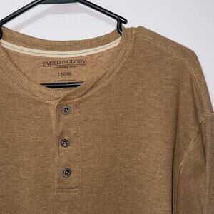 Faded Glory Men’s Henley Shirt - Brown Long Sleeve, Size Large (42/44)