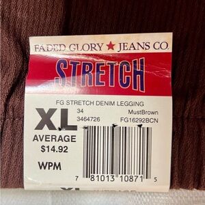 Faded Glory Must Brown Stretch Denim Leggings XL NWT 30.5” Inseam