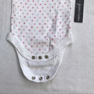 NWT. Pack of 3 Bodysuit for Baby Girls Size NB (Newborn). Short sleeves, snap bottom, hearts graphic throughout, 100% Organic Cotton. Pictures are part of description.