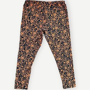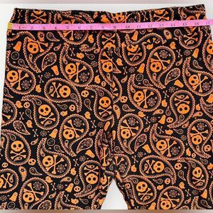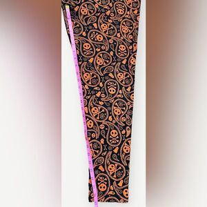 Faded Glory Orange & Black Halloween Skull & Ghost Print Stretchy Leggings.