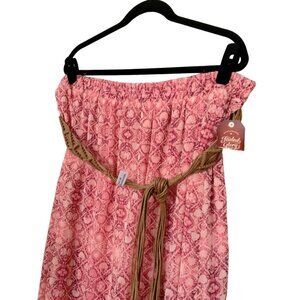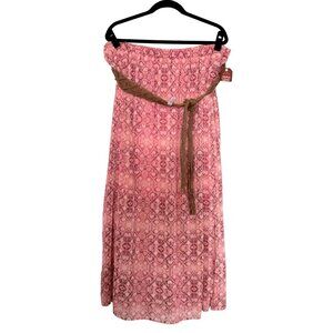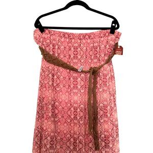 boho skirt, elastic waist skirt, belted skirt, faded glory skirt, pink patterned skirt, side slit skirt, half lined skirt, summer skirt, XXL skirt, casual skirt, lightweight skirt, braided belt skirt, plus size skirt