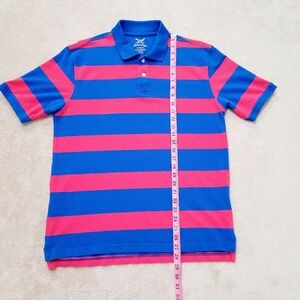 Faded Glory Polo Shirt Short Sleeve Red Striped 100% Cotton Men's Size Medium