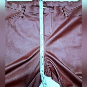 Faded Glory Pull On Skinny Leggings Faux Leather Stretch Lightweight Maroon Color Retro Style Size Large (12/14)
