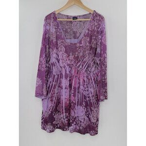 Faded Glory Purple V-Neck 3/4 Sleeve Liquid Knit Pullover Blouse 3x Fairycore