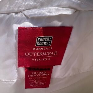 This Faded Glory vest features a sleek white quilted design, perfect for layering in cooler weather. The full-length zipper and lightly padded construction provide both style and comfort. Its clean, crisp appearance makes it a versatile addition to any wardrobe.