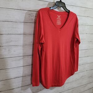 Faded Glory Red V Neck Long Sleeve Tee T Shirt Top