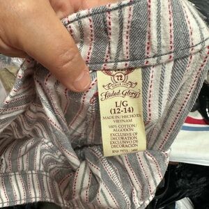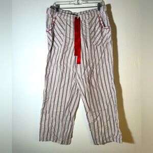 Casual joggers with red and white stripes. Comfortable fit with drawstring waist.