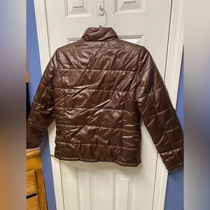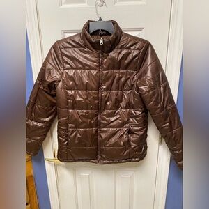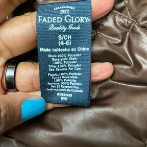 Faded Glory Reversible Puffer Jacket Brown Full Zip Up Size Small 4-6