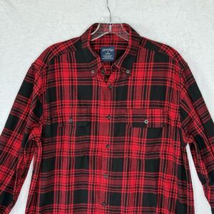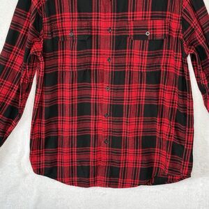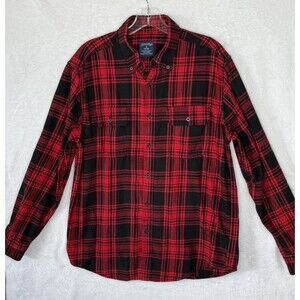Faded Glory Shirt Men's M Red and Black Plaid Button Up Long Sleeve Flannel Outdoors