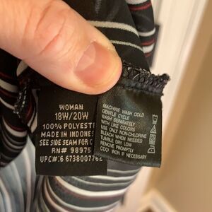 Faded Glory Striped Sheer Tank blouse red black white 18w