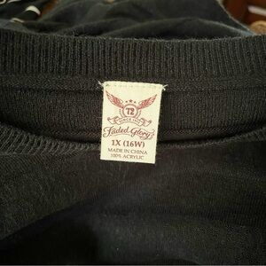 Faded Glory Sweater Womens Size 1X Black Crew Texture Long Sleeve Side Slits NWT