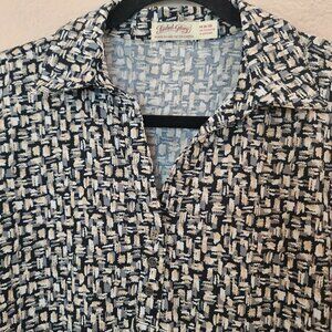 Faded Glory Top Womens Medium Brown Black Print Knit Popover Collared Casual