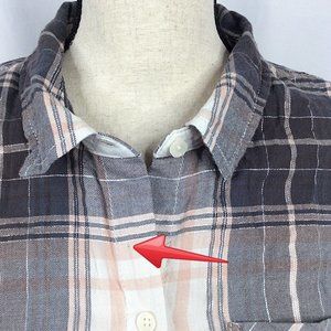 Faded Glory Top Womens Size 1X / 16W Gray Pink Plaid Long Sleeve Button Down
