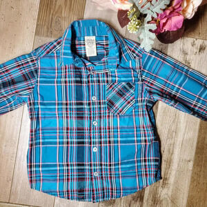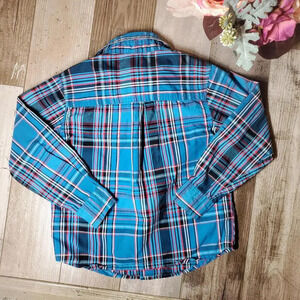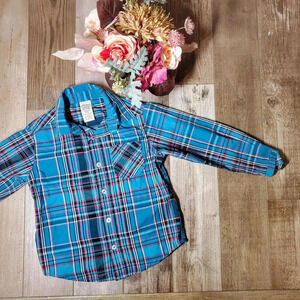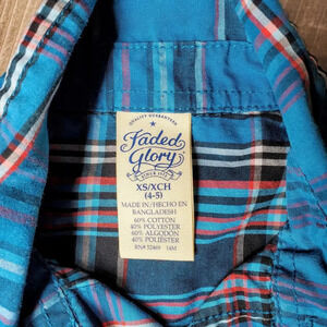 Faded Glory Turquoise Blue Plaid Button Down Long Sleeve Shirt Boys Size XS 4-5