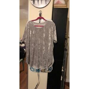 Faded Glory Velvety Shiny Silver Tee 2X!