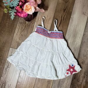 Faded Glory White Little Girls Size 4 Star Smocked Tiered Summer Dress EUC