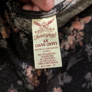 Faded Glory Women's 4X (26W/28W) Black Floral Sparkle Top Back Straps