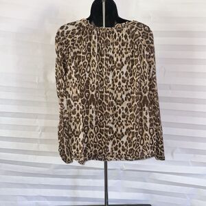 Faded Glory Women’s Animal Print Peasant Blouse Long Sleeve Size Medium Boho