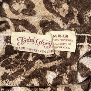 Details: Faded Glory 100% polyester women's animal print top with a front tie. it has elastic around the neckline.