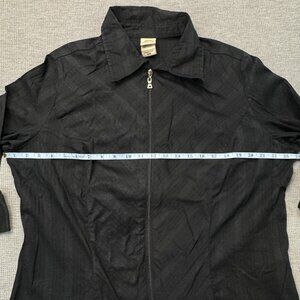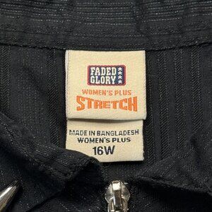 Faded Glory Womens Black Textured Zip Shirt Jacket 3/4 Sleeve Stretch Size 16W