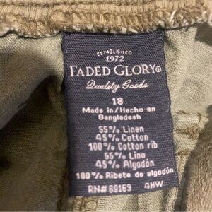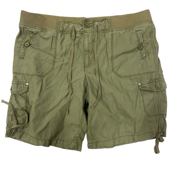 Faded Glory Women’s Cargo Shorts Olive Green Size 18 Linen Cotton