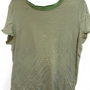 Faded Glory Women's Green Cotton Striped T-Shirt Sz 2X