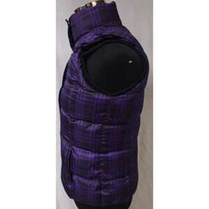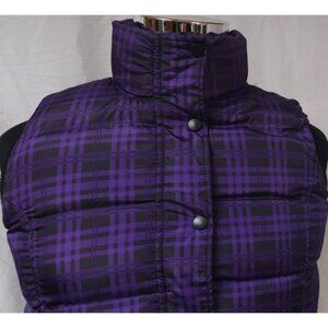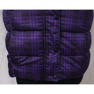 Brand & Description Faded Glory womens Juniors Small 4-6 Purple Black Plaid Fleece Lined Zip Snap Puffer Vest