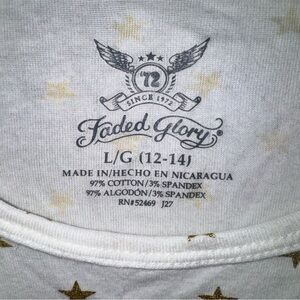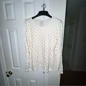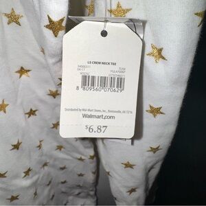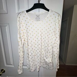 Faded Glory Women's LG 12-14 White Gold Star Print Long Sleeve T-Shirt Top NWT