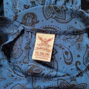 Faded Glory Women's Paisley Tunic Top XL (16-18) Blue & Black 100% Polyester