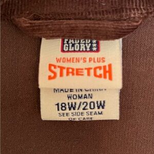 Faded Glory Women’s Plus Brown Corduroy Blazer Jacket 18W/20W