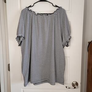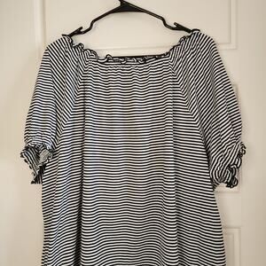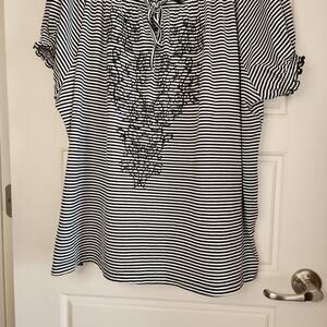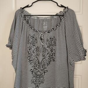 Faded Glory Womens Top 3XL (22W-24W) Black & White Embroidery Ruffle Feminine