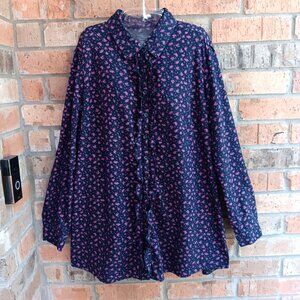 Faded Glory Womens Top Blouse Button Front Long Sleeves Roll Tab Ruffles Size 20