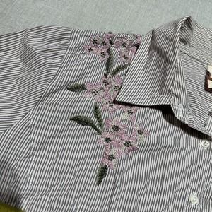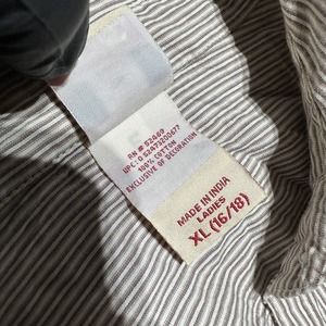 Faded Glory Womens White Pink Floral Striped Button Long sleeve shirt Size XL.