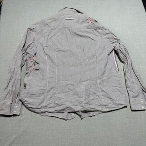 Faded Glory Womens White Pink Floral Striped Button Long sleeve shirt Size XL