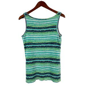 Faded Glory Womens XXL Tank Top Green & Blue Striped Pattern