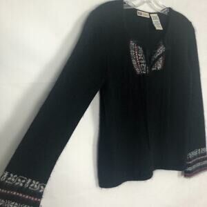 Faded Glory vintage 90s Y2K black pullover sweater. Boho style. V-neck with self tie. Flared sleeves. In good used condition. No visible flaws.