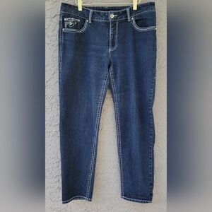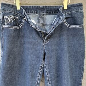 Faded Glory dark wash plus size denim silver embroidered back pockets size 16