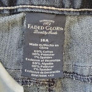 Classic and flattering, these Faded Glory dark wash denim jeans are a must-have for everyday wear. Designed in a plus size 16 fit, they feature beautiful silver embroidered back pockets that add a touch of western flair. The dark wash makes them versatile for dressing up or down, while the sturdy denim offers comfort and durability.