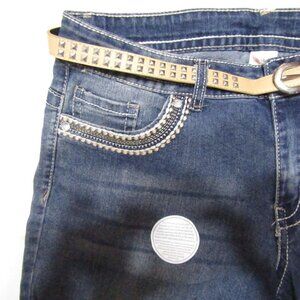 Belt with metal studs and buckle. Folded bottoms. Blue mid was denim