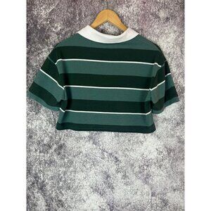 Faded Green White Striped Cropped Preppy Polo Shirt Top Women's Small