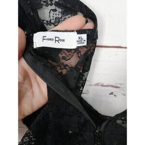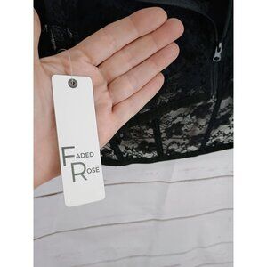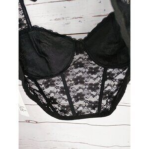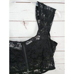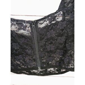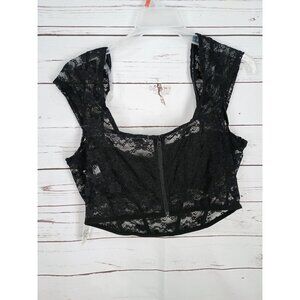 Faded Rose Black Sheer Lace Bustier Crop Top With Cap Sleeves & Back Zipper Clos